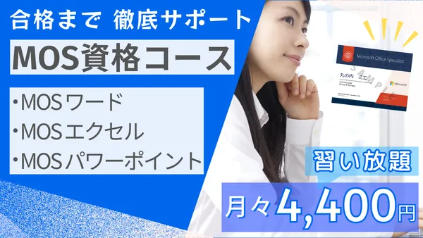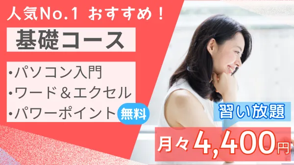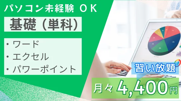 | コース料金 | オフィス標準 各11,000円 MOS資格対策 各16,500円 上級向け科目 各16,500円~ ※コース料金のお支払いは、申込時に一度きりです。(毎月ではありません) ※お申込済のコースは、卒業まで期限なしで受講できます。 |